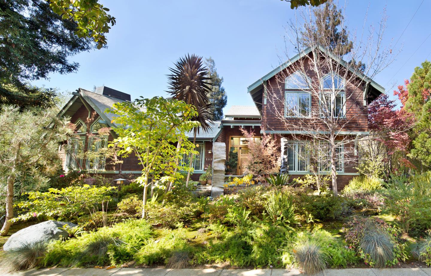 Custom designed home on a large lot in the Old Palo Alto neighborhood. Vaulted ceilings and large windows fill the home with natural light. Clean lines and craftsman details create a bond between the shingle-style neighborhood and contemporary style. Three level home, with basement. Possibility to create a fourth bedroom on either the ground floor or at the basement level.