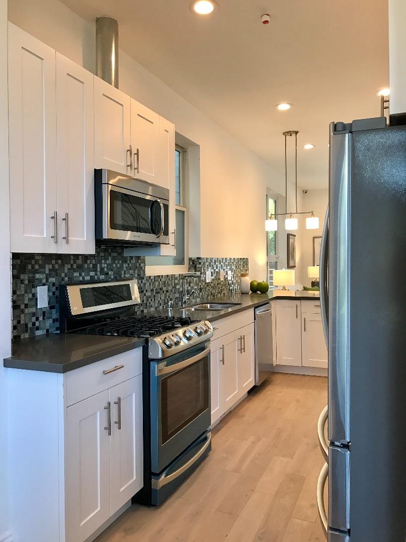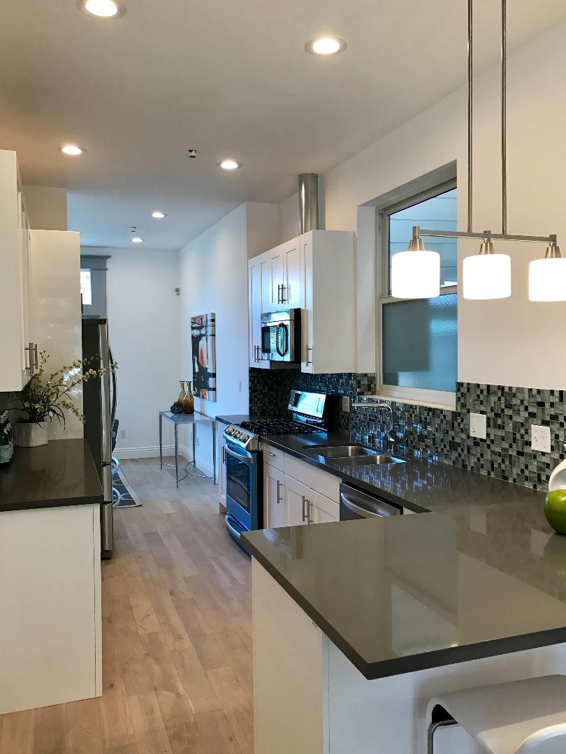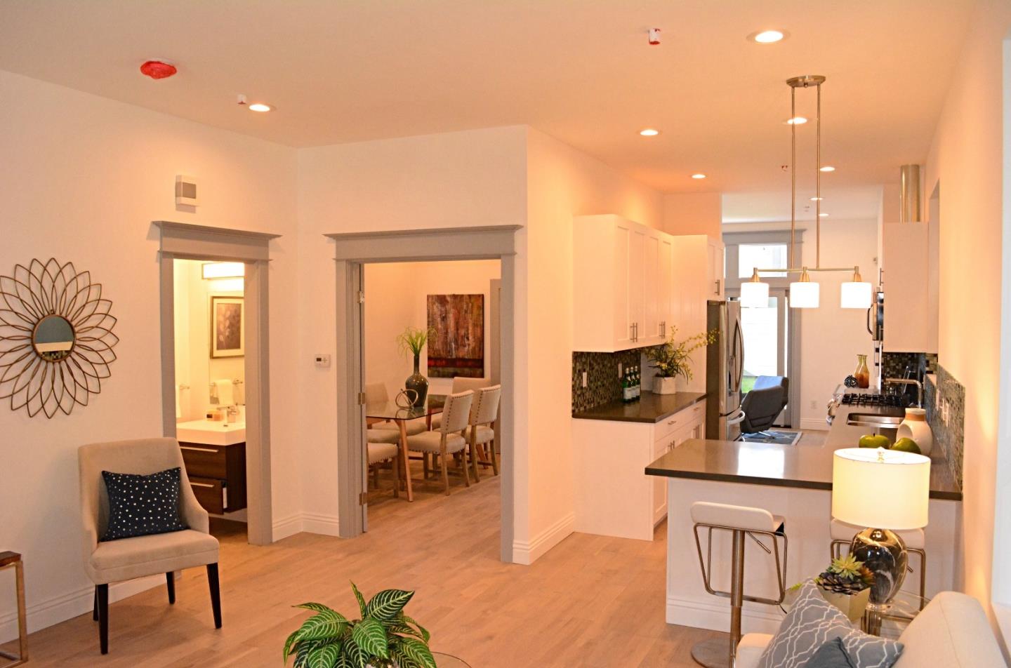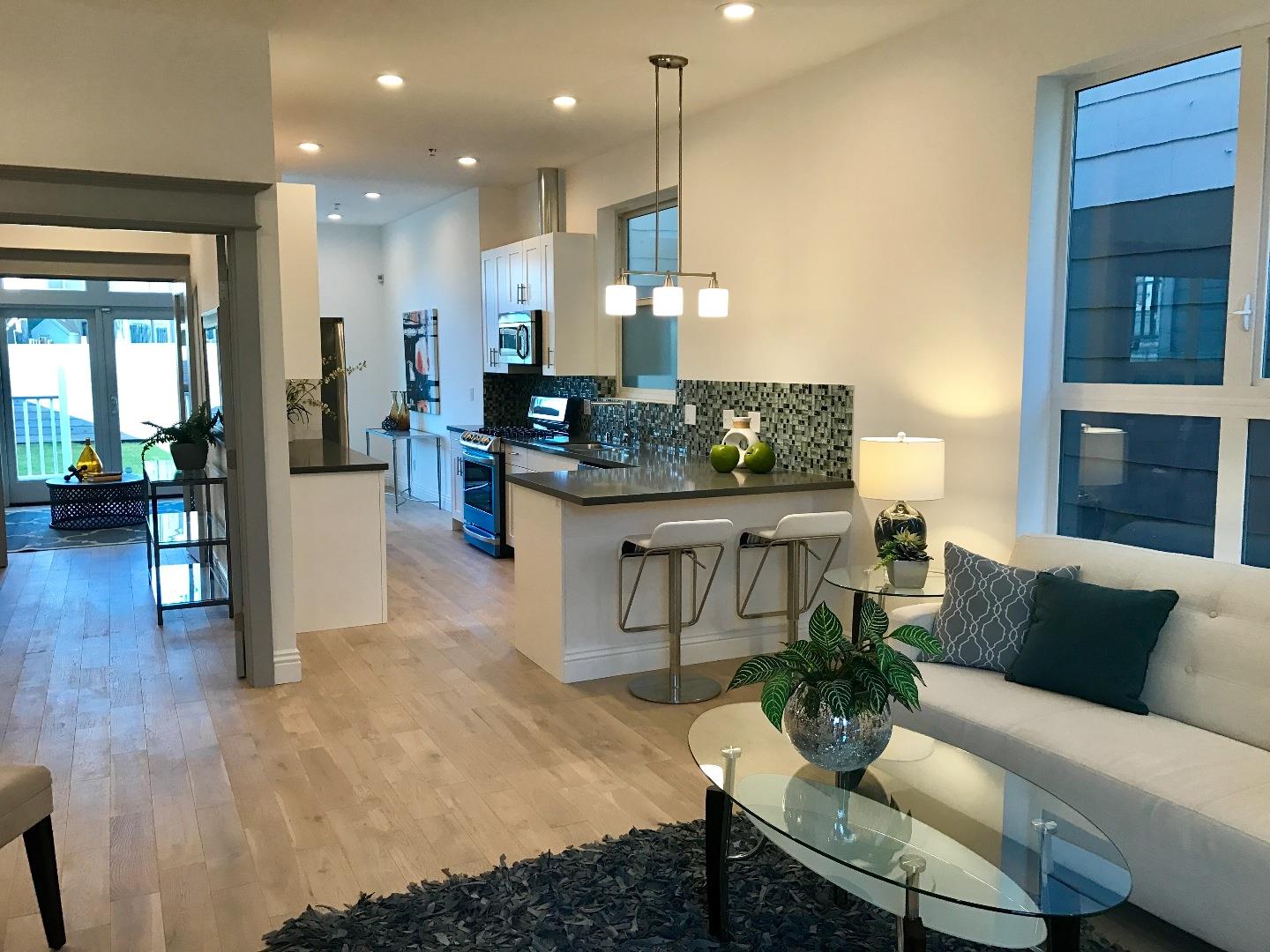 Stunning brand new construction nestled in Prescott area - one of West Oakland's hottest neighborhoods surrounded by million dollar homes. Walking distance to BART & approx. 10 minutes driving to San Francisco! Natural lighting throughout this modern 3 bedroom, 2.5 bath home illuminates the spacious floor plan, contemporary stair railing, high ceilings with recessed LED lighting, carefully detailed workmanship, elegant moldings, & sophisticated eat-in-kitchen adjacent to the formal dining room, furnished with quartz countertops, mosaic glass tile artistry, & quality stainless appliances. The oversized sliding doors lead into the generously sized yard & patio with freshly manicured landscaping enclosed by a high, chic cedar wood fence to provide a perfect space for entertaining with ultimate privacy. The front yard is equally charming with a 1 car parking space. Indoor and outdoor camera surveillance and alarm system set up, along with sprinkler system, and tankless water heater.