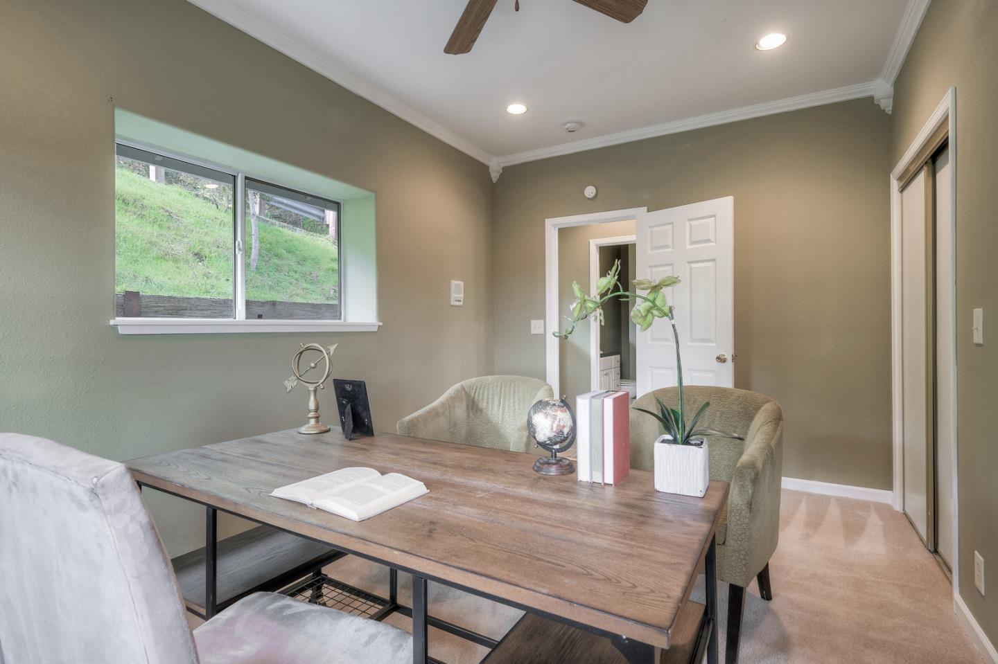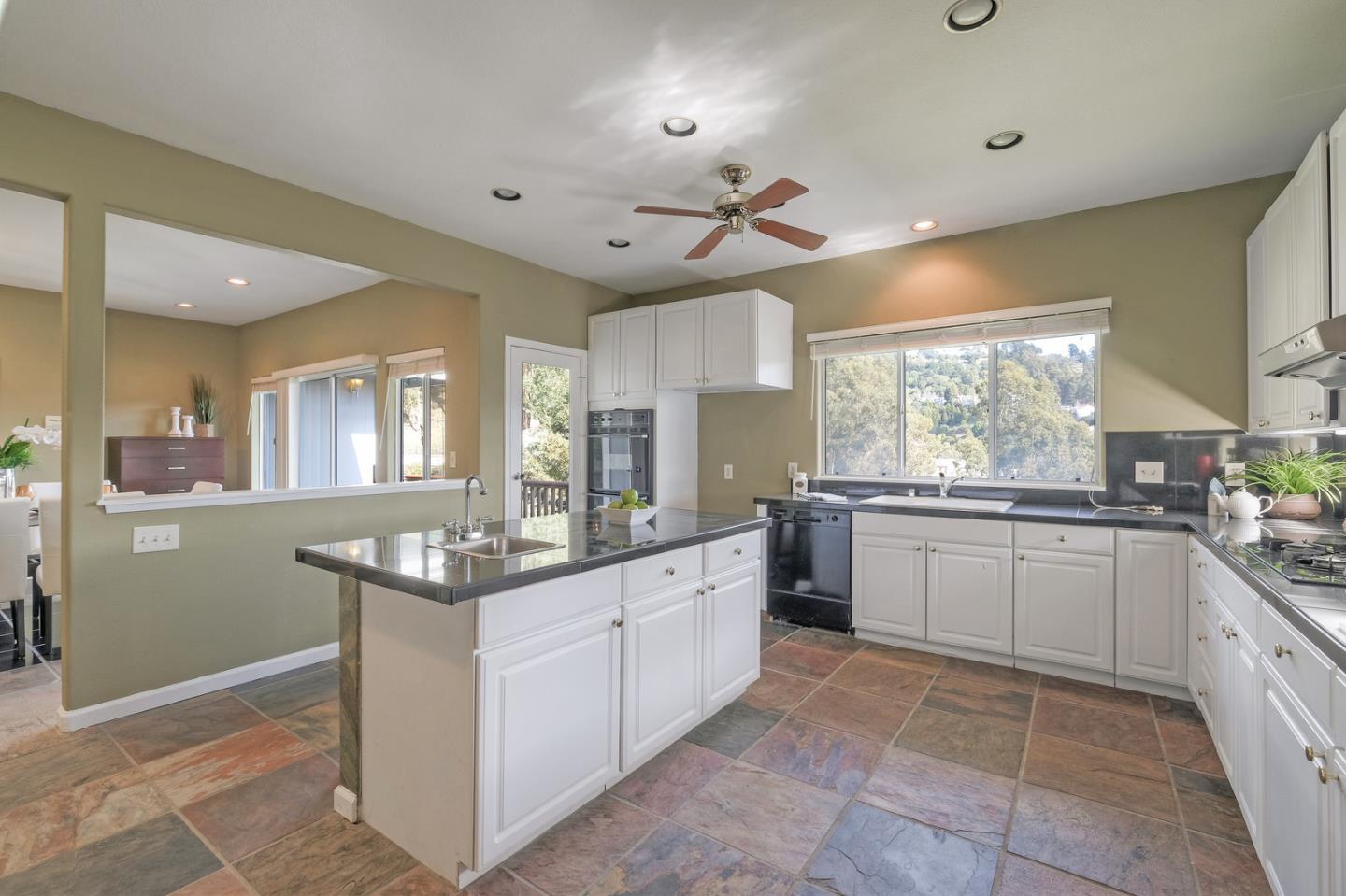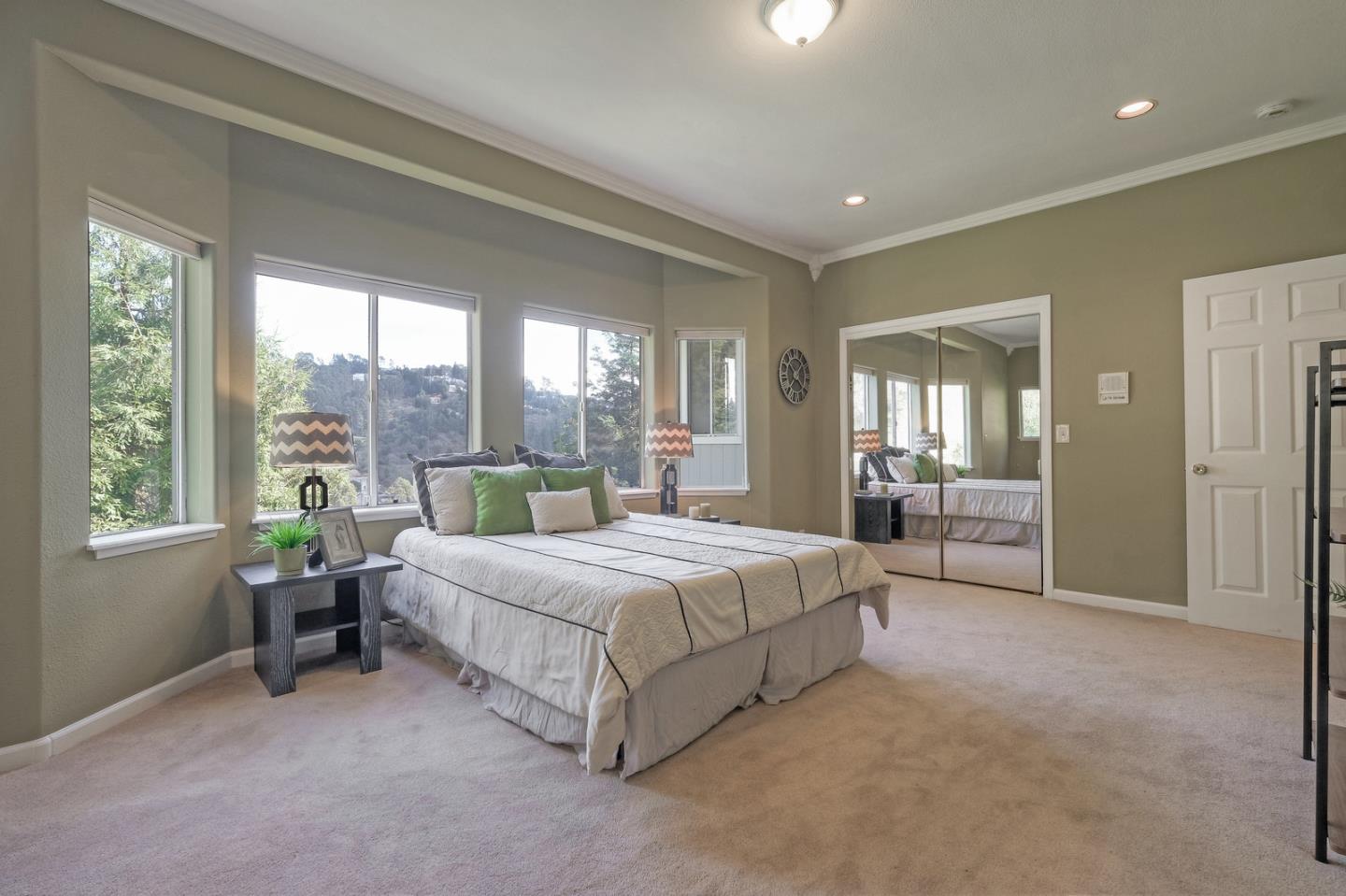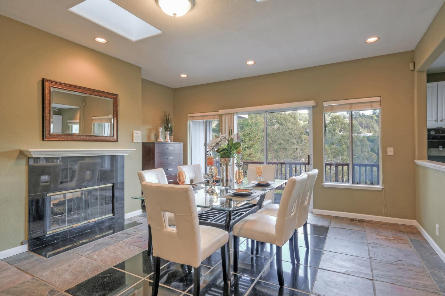 Spacious custom hillside home in desirable Claremont Hills with Panoramic views of the hills and open and airy layout. Huge high-ceiling great room and elegant formal dining room with beautiful double-sided fireplace, and sliding doors leading to the balcony, spacious gourmet kitchen with white cabinets and black counters, and a large pantry. Master bedroom on the other side with tons of natural lights generous en-suite bathroom and closet. The lower level leads to the family room, two spacious bedrooms with bathroom, and convenient laundry. Attached garage with interior access. Close in location just past Hiller Highland townhomes. Easy access to Rockridge/Elmwood shops & HWY 24. City of Oakland, Berkeley mailing only.