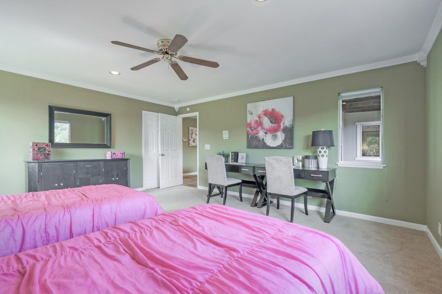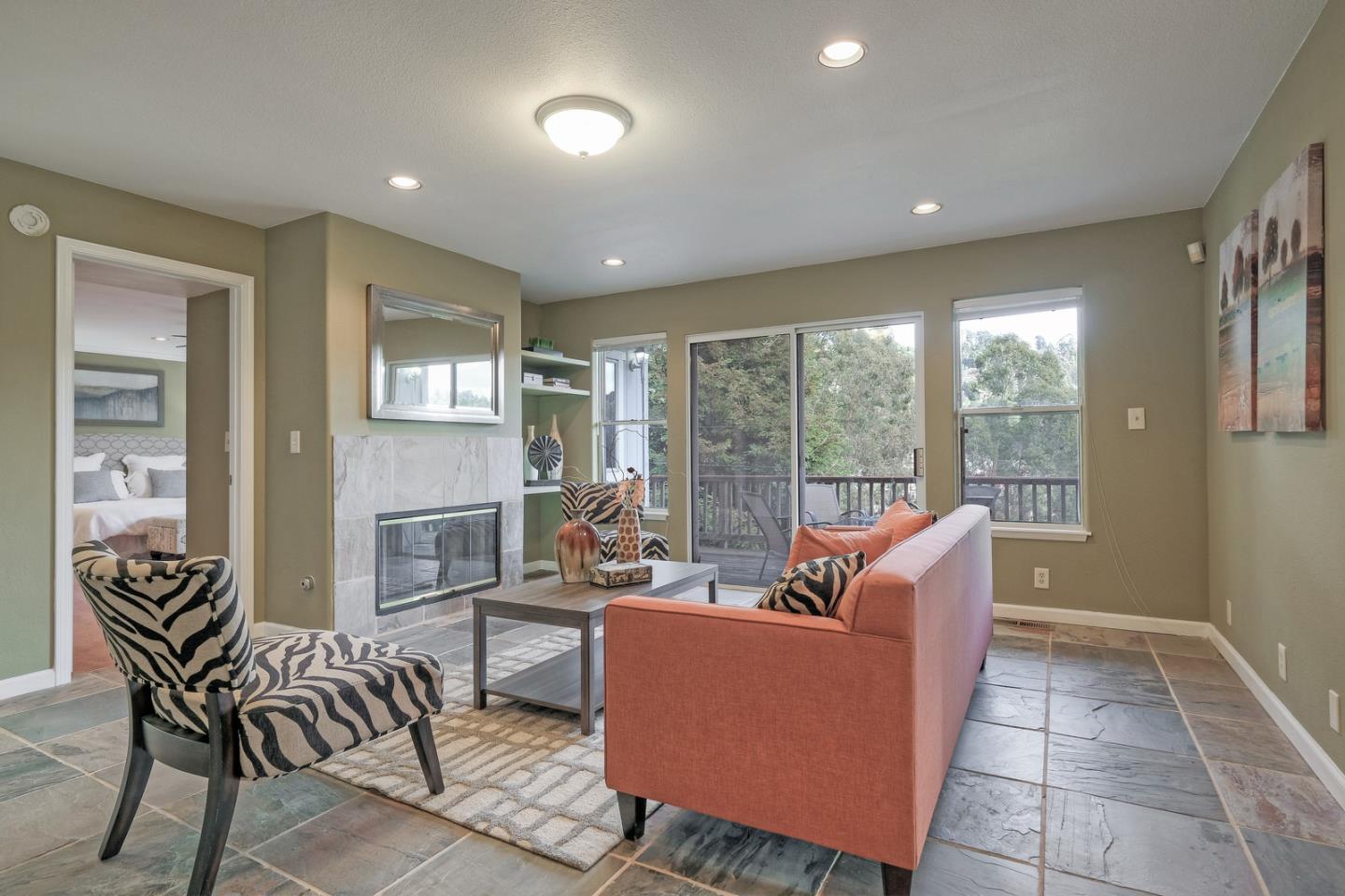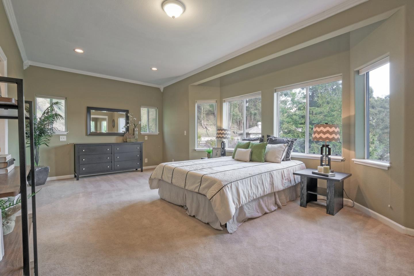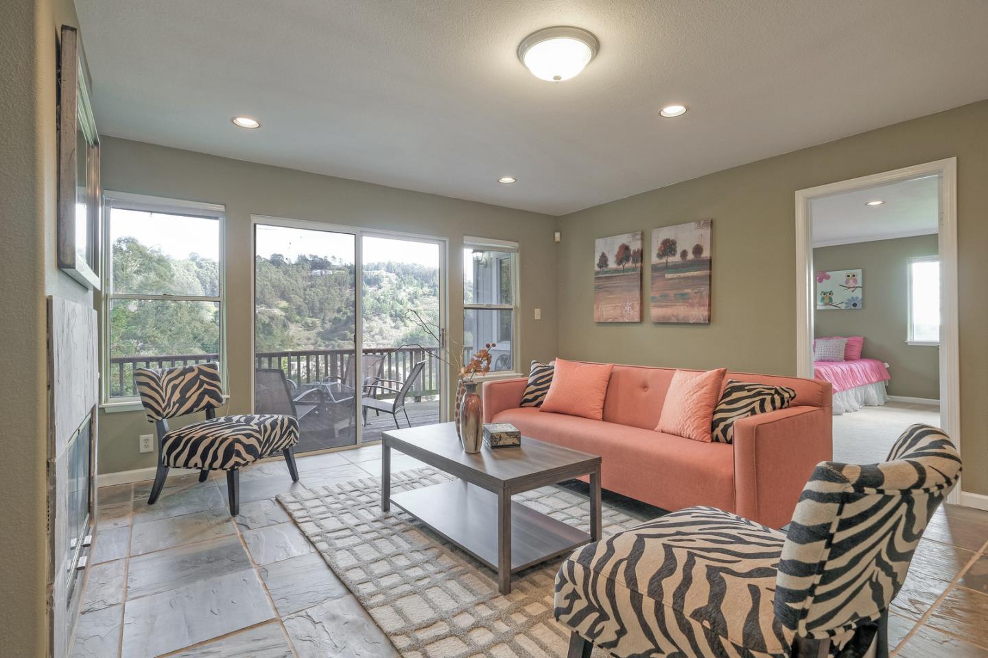 Spacious custom hillside home in desirable Claremont Hills with Panoramic views of the hills and open and airy layout. Huge high-ceiling great room and elegant formal dining room with beautiful double-sided fireplace, and sliding doors leading to the balcony, spacious gourmet kitchen with white cabinets and black counters, and a large pantry. Master bedroom on the other side with tons of natural lights generous en-suite bathroom and closet. The lower level leads to the family room, two spacious bedrooms with bathroom, and convenient laundry. Attached garage with interior access. Close in location just past Hiller Highland townhomes. Easy access to Rockridge/Elmwood shops & HWY 24. City of Oakland, Berkeley mailing only.