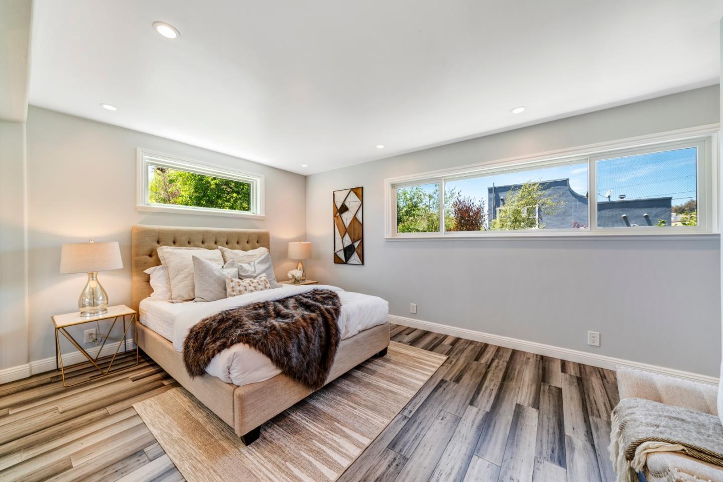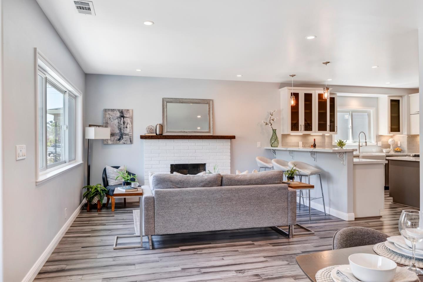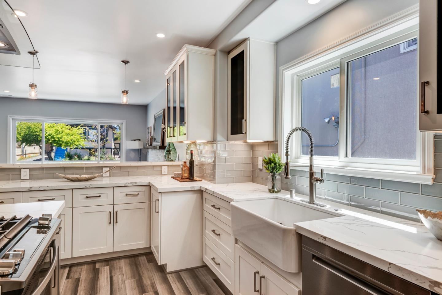 Bright and modern with exquisite finishes throughout, this turnkey 4 bedroom, 2 bath home has been fully remodeled from studs to finishes with meticulous attention to detail and design. The foyer opens into a gracious open floor plan ideal for entertaining. The sunny living room is welcoming and spacious, with a lovely brick fireplace and large picture window, a large center island and stove with a sleek range hood. Gleaming Quartz countertops and a subway tile backsplash. Down the hall, 4 large, light-filled bedrooms include a luxurious and serene master suite with direct access to the backyard. A utility room with a new furnace completes the interior. Located in the vibrant and sought-after neighborhood of South Berkeley, this gem of a home is mere steps away from trendy eateries, cafes, and grocery stores including the popular Berkeley Bowl. San Pablo Park is within 2 blocks, and easy access to freeways and BART.