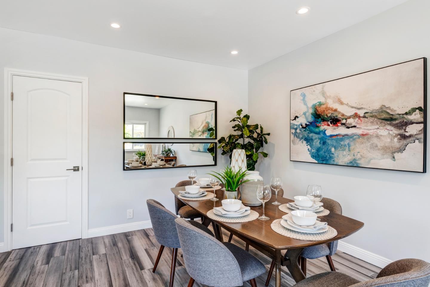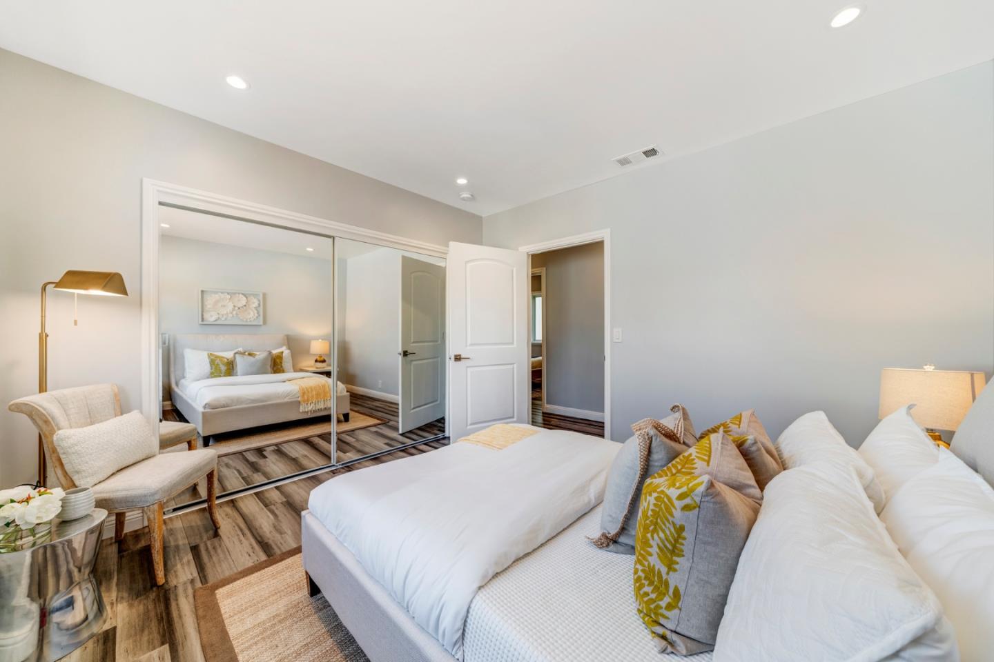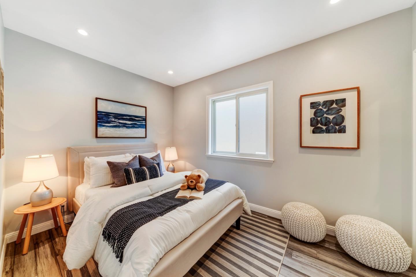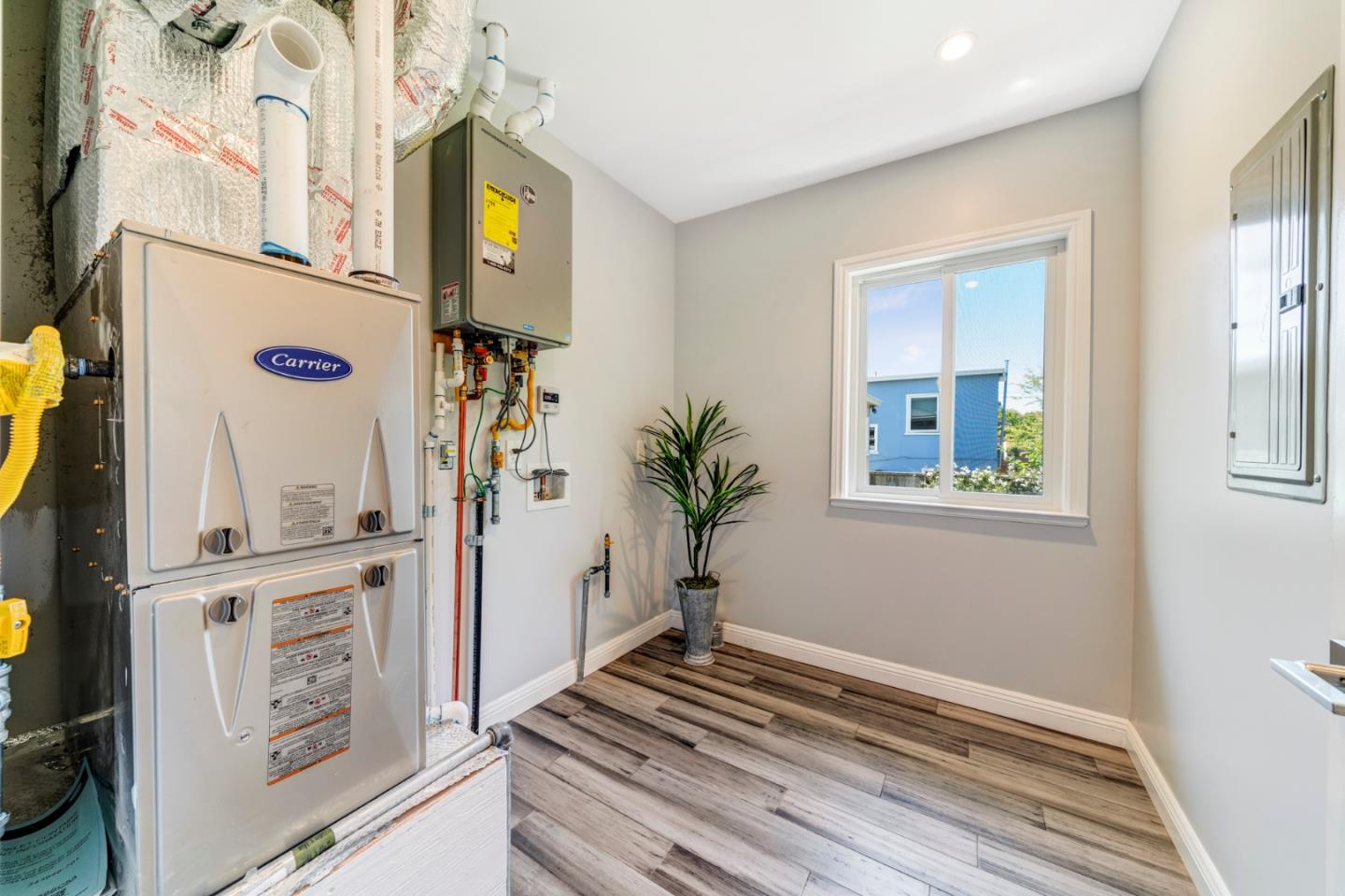 Bright and modern with exquisite finishes throughout, this turnkey 4 bedroom, 2 bath home has been fully remodeled from studs to finishes with meticulous attention to detail and design. The foyer opens into a gracious open floor plan ideal for entertaining. The sunny living room is welcoming and spacious, with a lovely brick fireplace and large picture window, a large center island and stove with a sleek range hood. Gleaming Quartz countertops and a subway tile backsplash. Down the hall, 4 large, light-filled bedrooms include a luxurious and serene master suite with direct access to the backyard. A utility room with a new furnace completes the interior. Located in the vibrant and sought-after neighborhood of South Berkeley, this gem of a home is mere steps away from trendy eateries, cafes, and grocery stores including the popular Berkeley Bowl. San Pablo Park is within 2 blocks, and easy access to freeways and BART.