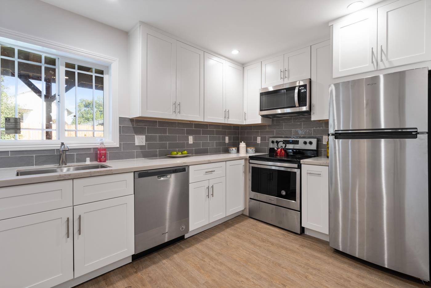 Located in the heart of sunny West Oakland is a fully remodeled 2 unit home. This classic home with its olden charm boasts large windows, rounded ceilings and beautiful moldings. Unit 1, upper level has 3BD/2BTH, hardwood floors throughout and spacious living room. Kitchen has all new stainless steel appliances, granite countertops, eat in kitchen and master bedroom looking out to a beautiful balcony and backyard. Unit 2, lower level has 2BD/1BTH unit with beautifully designed kitchen. Home comes with laundry rooms, 2 car garage and spacious easily maintained backyard with a plum tree. Minutes away from the bay bridge, BART, restaurants and night life. Great opportunity to live upstairs and generate income from unit downstairs. Must See!