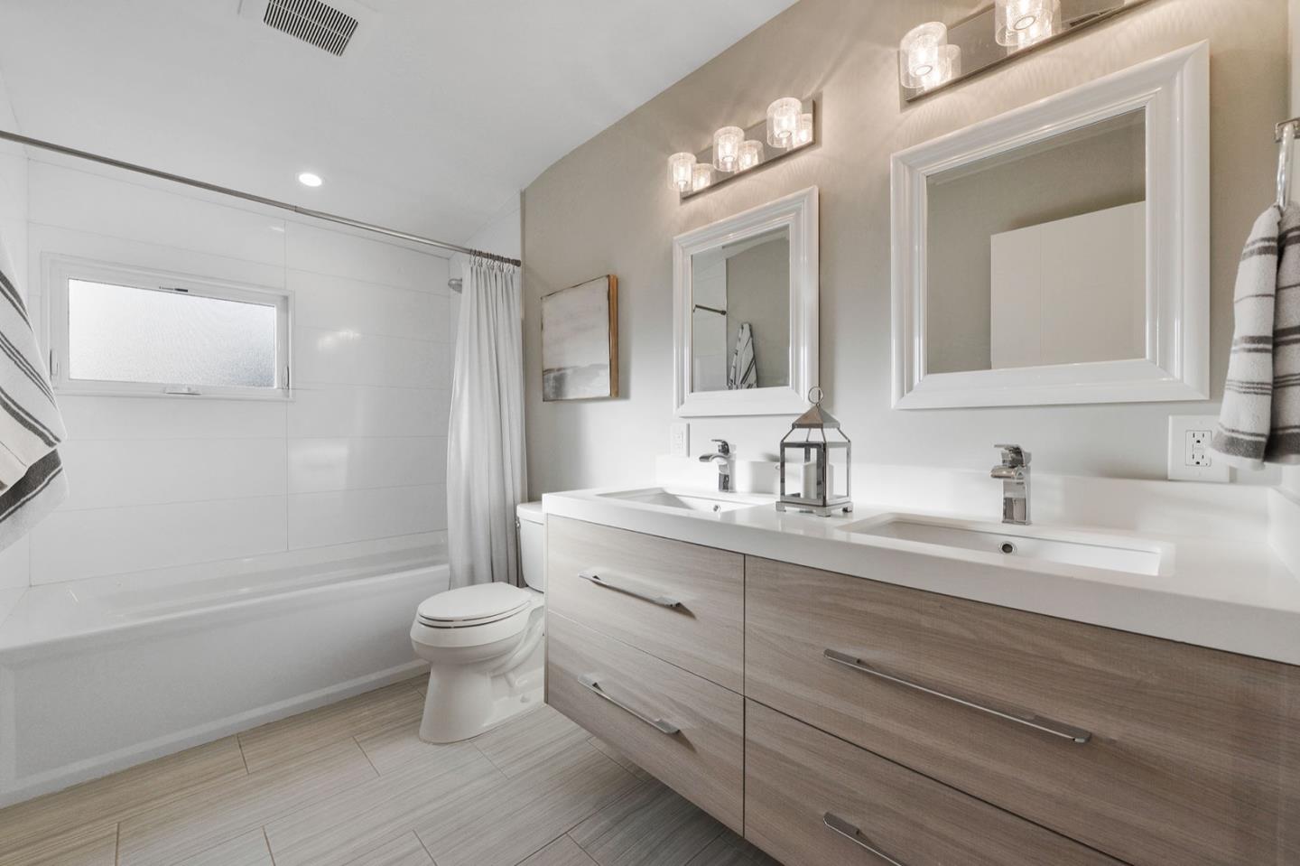 Stunning completely remodeled home with outstanding Los Altos schools including highly-desired Oak Elementary! Meticulous care was taken with the beautiful design of every aspect of this home from the modern smooth stucco exterior to the glistening designer appointed kitchen with Thermador appliances. Upstairs the master bedroom has a new walk-in closet and a master bath with a stand-alone tub and tile/seamless glass surround shower. The gorgeous landscaping is complete with water feature, built-in speakers and majestic redwood tree. There are also plans for a swimming pool, in-case the new Buyer would like to add one. Property was taken down to the studs and fully remodeled with permits by award-winning home designer!