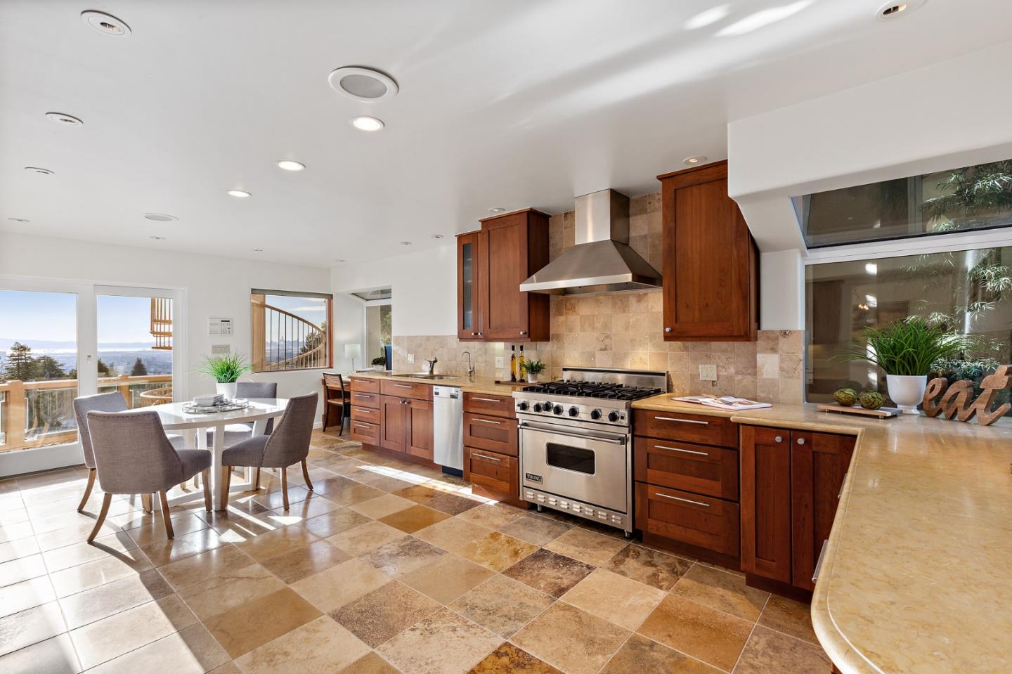 4969 Proctor Avenue is a one of a kind home w/ fascinating views of the Bay, bridges, city, & Mt. Tam. As one walks into the Spanish style home, one is greeted w/ a lot of natural lighting from all angles into the elegant n comfortable living & dining space. The eat-in style kitchen is conveniently located to entertain guests from the inside & other parts of the home & w/ top-line stainless appliances. The master suite has a luxury layout w/ a grandiose bath & a private balcony. The top level also has a laundry and spacious 2nd bed. On the lower level, there is bed. with a bath and 2 large closet/ storage space. Down a few steps, there is a 2nd laundry for convenience. The lowest level, there is a 2nd suite w/ an amazing living space w/ a wet bar for entertaining. Upper Rockridge is sure to delight w/ its captivating style. Throughout the well kept house, one is reminded that every little details have been thoroughly thought out and built w/ entertaining in mind.