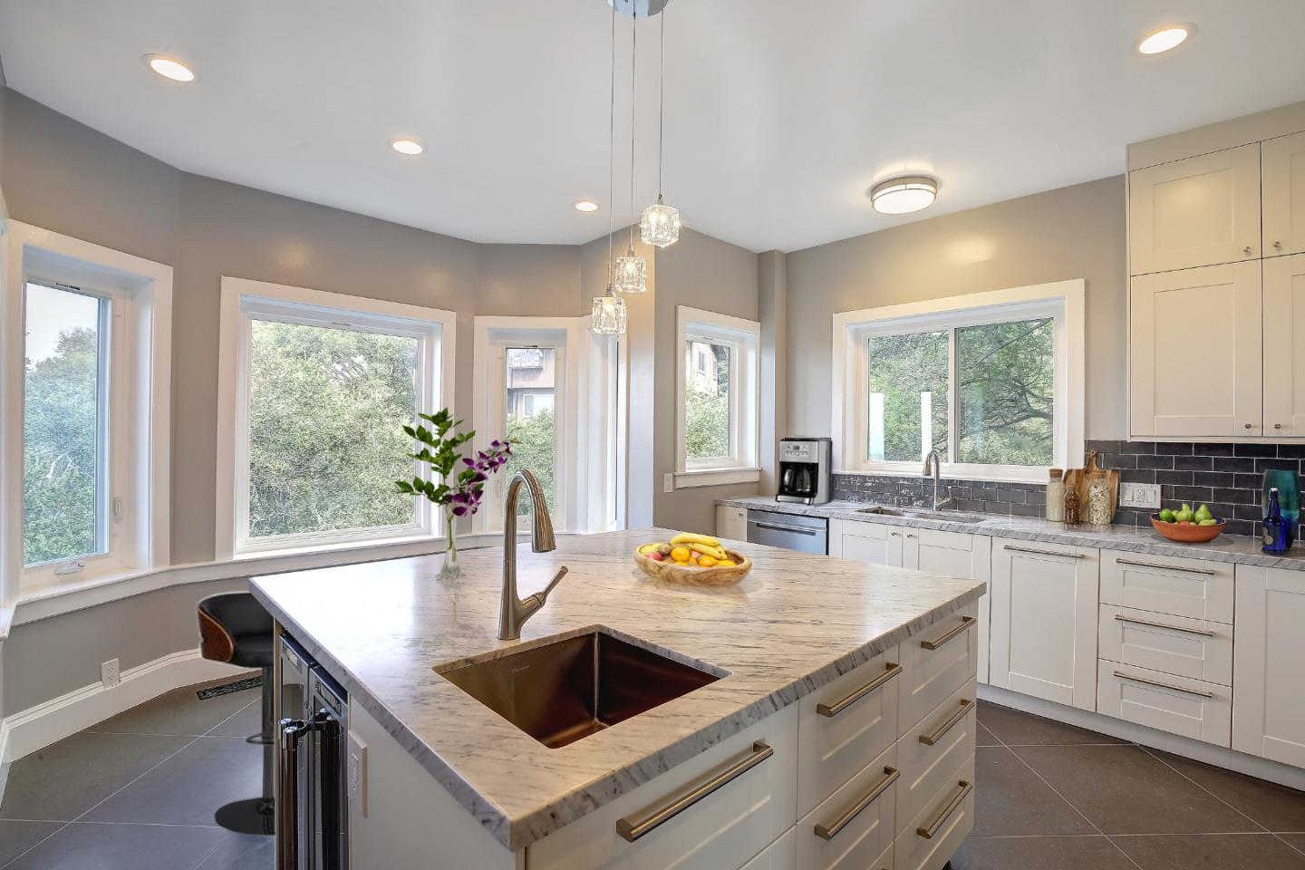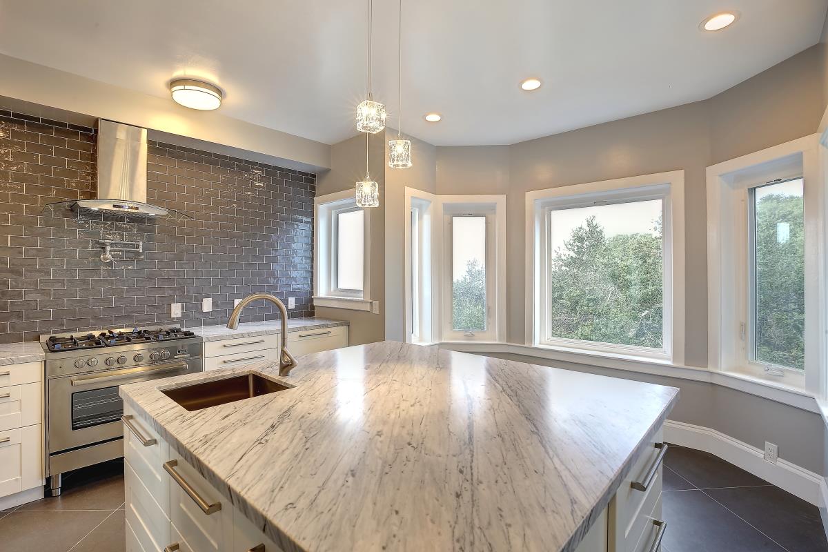 Update during Coronavirus crisis: Please do your own tour with your Realtor via lockbox access; no notice required. The house has been disinfected, but disposable gloves are available at entrance. Luxurious 6 bed, 3.5 bath home, fully remodeled, with views of Oakland, San Francisco and bridges. Over 60 windows with views from 3 decks. Private courtyard with maintenance free grass area. New kitchen, Carrera marble countertops, Italian artisan tile backsplash, prep sink and main sink, 2 ovens, wine fridge, dishwasher, microwave, 6 burner gas stove, soft close cabinets with plenty of storage. Large island with well-lit breakfast counter. Open main level has a large dining room with retro tile flooring. 2 connected living rooms on two levels, large view windows on both sides. Master bath features a soaker tub, large shower with rain shower head, double vanity with LED mirrors. The 2-car garage includes a washer/dryer laundry room, and ample storage space.