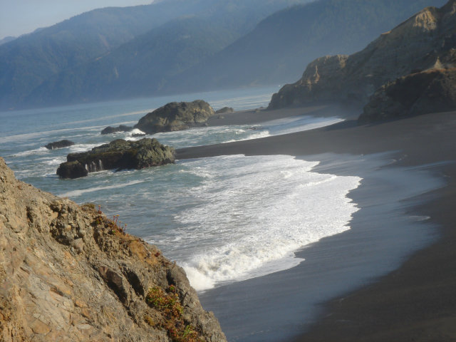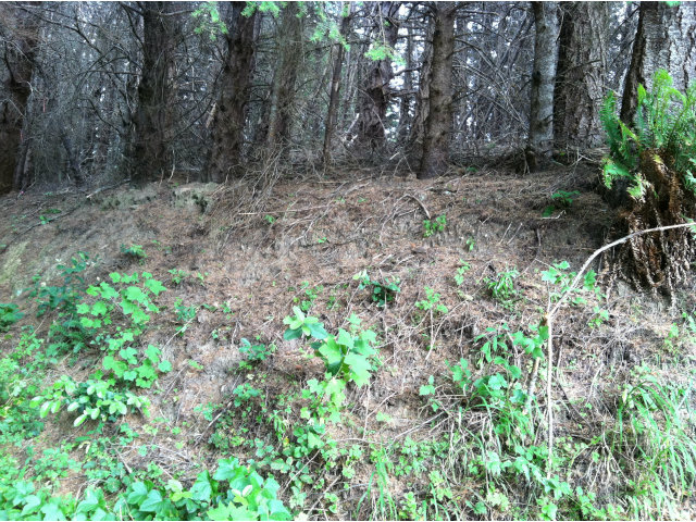 DOUBLE LOT 1/3 of an acre. Corners marked. Western ocean view. Water, power and sewer at the property. The 3 pictures = lighthouse, rocks stacked and black sands beach are located in 3 different locations in Shelter Cove and are not adjacent to the property.