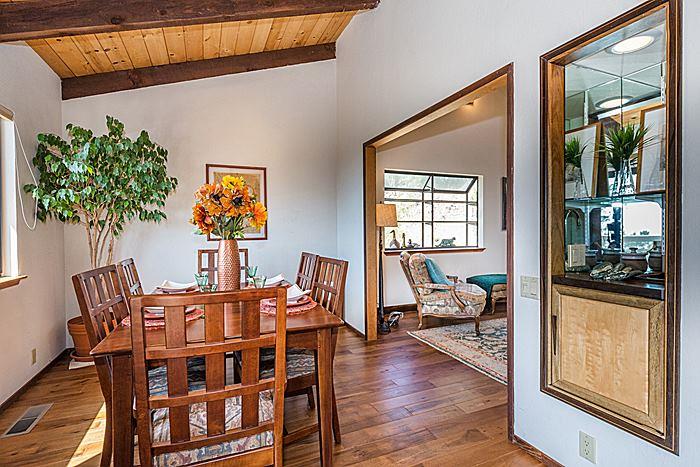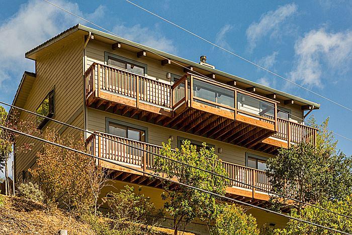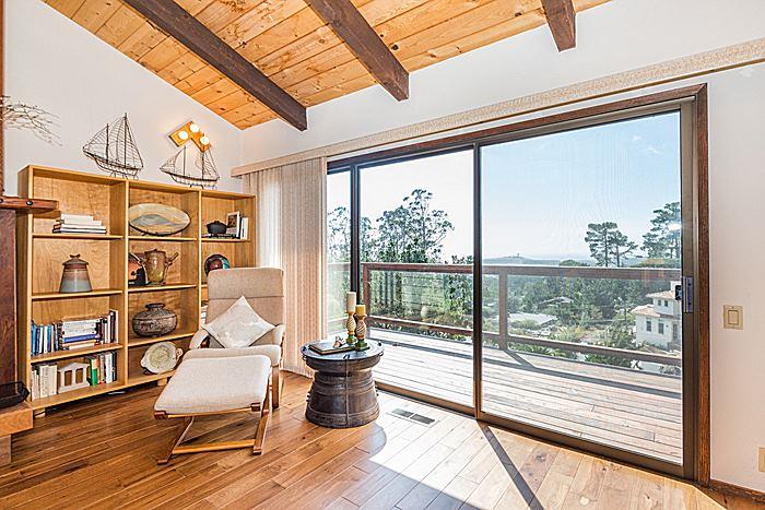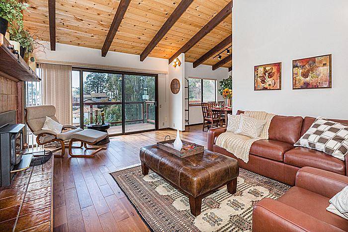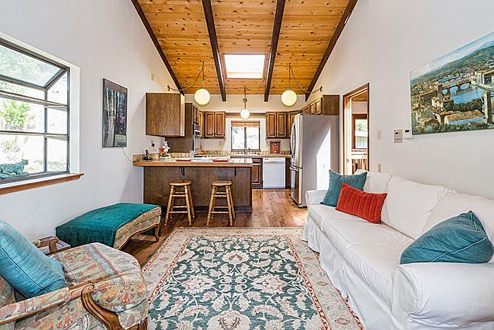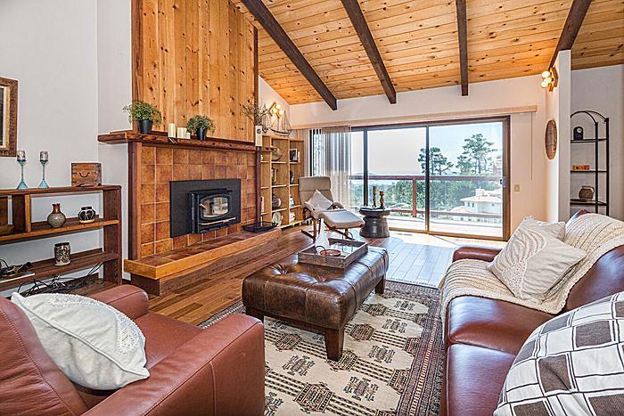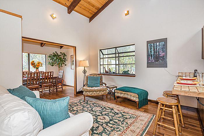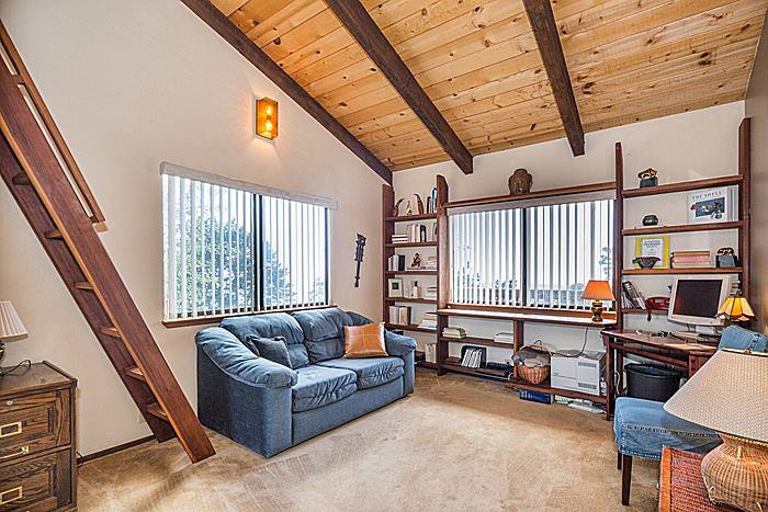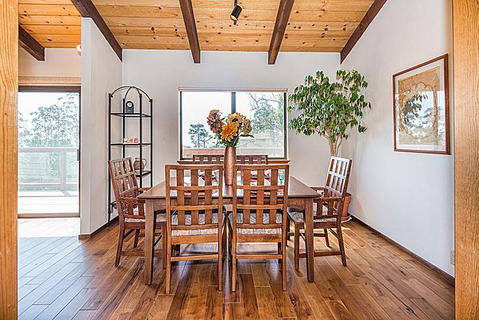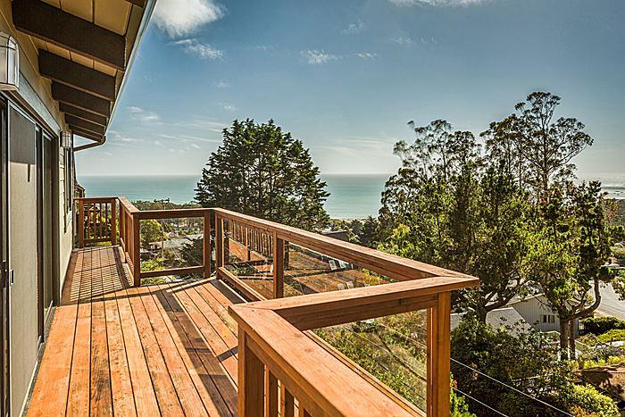 This is a must see home! Full-on ocean views from every room in the house. The living room, dining room & den/bedroom on the upper level plus 3 bedrooms downstairs all have an ocean view. Gorgeous dark hickory hardwood floors complement the ambiance and style of the home. Lofted ceilings with a reverse floorplan, maximize wonderful feeling in this house. All in all it is quite a gem.