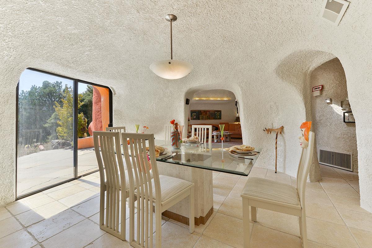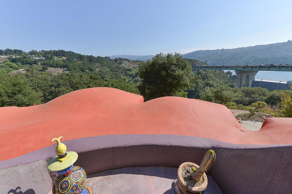This Hillsborough iconic landmark, seen from highway 280, is on the market for the first time in 19 years. In 1976 Bay Area architect William Nicholson designed the multiple domed home that is nestled into the hillside overlooking Crystal Springs Reservoir. Architect, Eugene Tsui, designed the "biologic" kitchen. Interesting rooms include a game room, the conversation pit, and the 3rd bedroom with a loft. This is an amazing opportunity for buyers who appreciate the architecture and design.